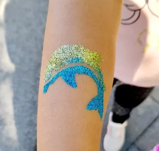 Fantasievolle Motive (Prinzessin, Superheld, Tiger, Schmetterling u.v.m.) mit hautfreundlichen, geprüften Farben. Glitzertattoos, funkelnde Highlights für kleine und große Partygäste in München.